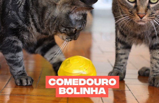 Existem diversos comedouros adaptados em forma de bolinhas no mercado, que conforme o gato brinca, a ração ou petisco vai caindo, fazendo com que o animal se esforce para que esses pequenos grãos caiam da bolinha, consequentemente fazendo com que ele gaste energia e também se alimente.
